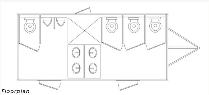 *Women: 2 stalls, 1 sink; Men: 1 stall, 2 urinals, 1 sink